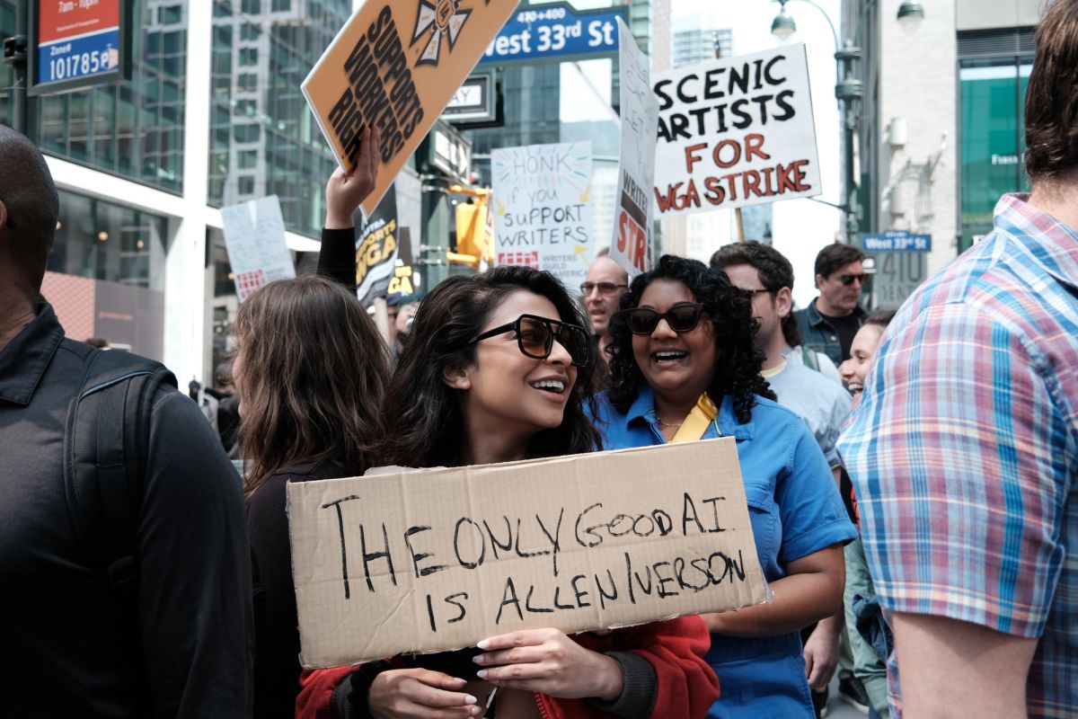 «AI TV WILL SUCK», stod det på plakaten til et av medlemmene av The Writers Guild of America, som i forrige uke tok ut medlemmene sine i streik. Til tross for at Hollywood tilsynelatende er et overflødighetshorn av jobbmuligheter for manusforfattere (599 originale serier ble rullet ut på strømming i 2022), blir det bare vanskeligere for den gjengse skribent å ha en noenlunde stabil hverdag i studiosystemet.