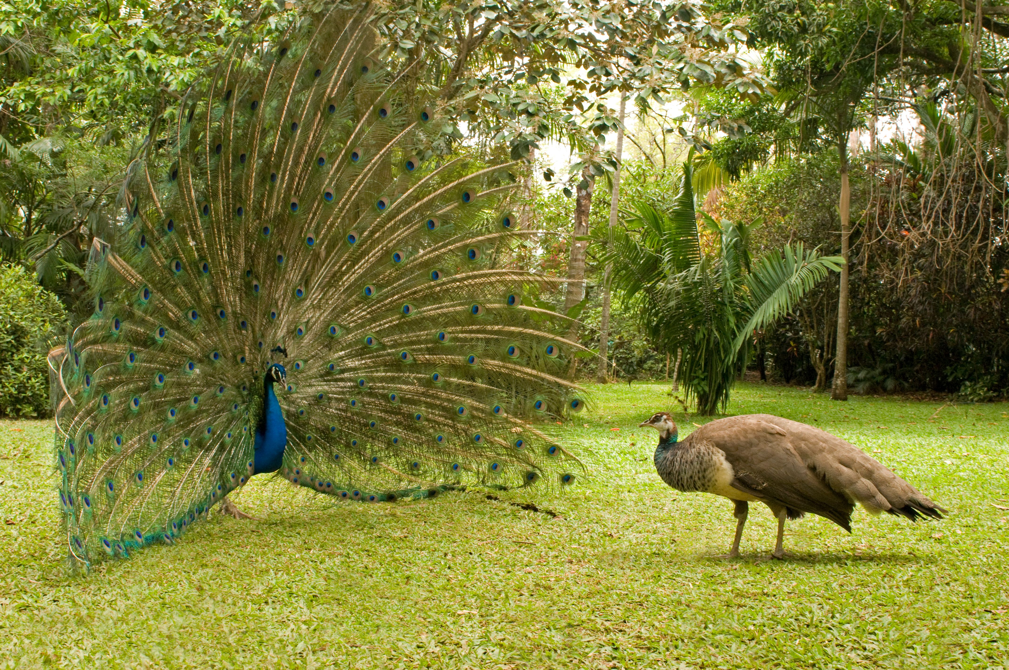 Mannlig (t.v.) og kvinnelig påfugl. Foto: Getty Images