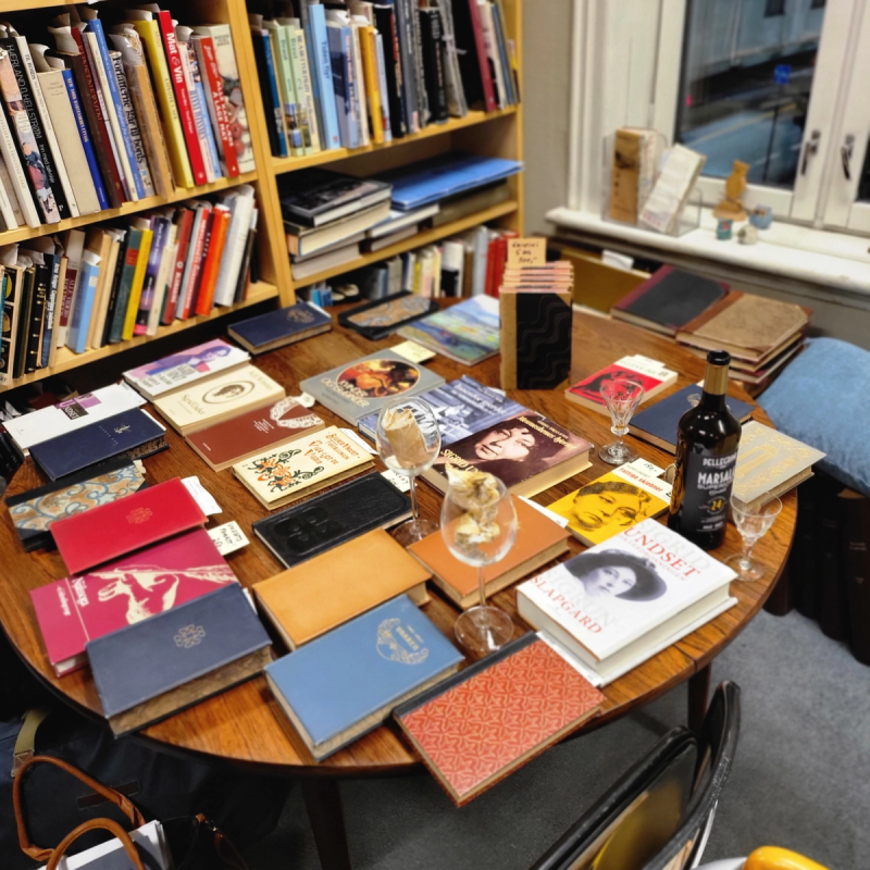 Denne romanen er nå forøvrig ute, sammen med et ras av andre Undset-titler, i en ny versjon i pocket med ungdommelig omslag. Som for å nå dagens moderne kvinner? Noen av titlene kommer med nye forord av dagens forfattere. Men kvelden føltes site specific, fremført med stor entusiasme for et stappfullt antikvariat, der hun måtte snakke ekstra høyt gjennom tre små rom for å bli hørt. Juletreet var pyntet, det var fruktkake og Undsets spesielle favorittdrikk Marsala i glasset, og innehaveren viste frem og fortalte noen gjenfunne bok og dokument-skatter til Undset-selskapets medlemmer, noen av dem tosifret antall tusen. Ikke akkurat pocket. Det er så klart ekstra stas å slippe disse pompøse forfattersamtalene i store flotte saler som er så populære nå. Bedre å boltre seg i livsfryden blant rotete hyller med lokalhistorie, vinlitteratur, særtrykk og utgått poesi. Jeg var blant de yngre der oppe i salene, men følte meg ytterligere viril etter denne litterære injeksjonen. Og «Jenny» skal i alle fall tas ut igjen av hyllen som førjulslesing nå. Støvete, harde permer, så klart.